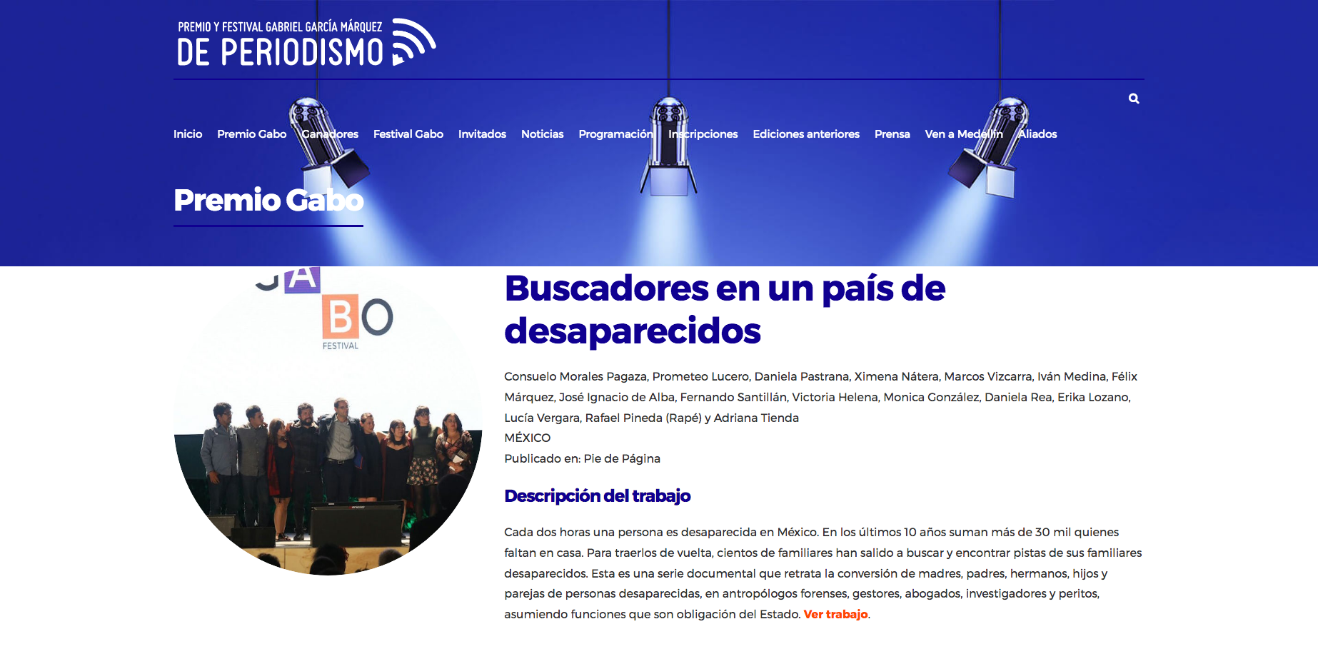 Tercer lugar, Pictures of the Year Latam 2017, categoría Multimedia – Sitio web – Proyecto Buscadores, Pie de Página