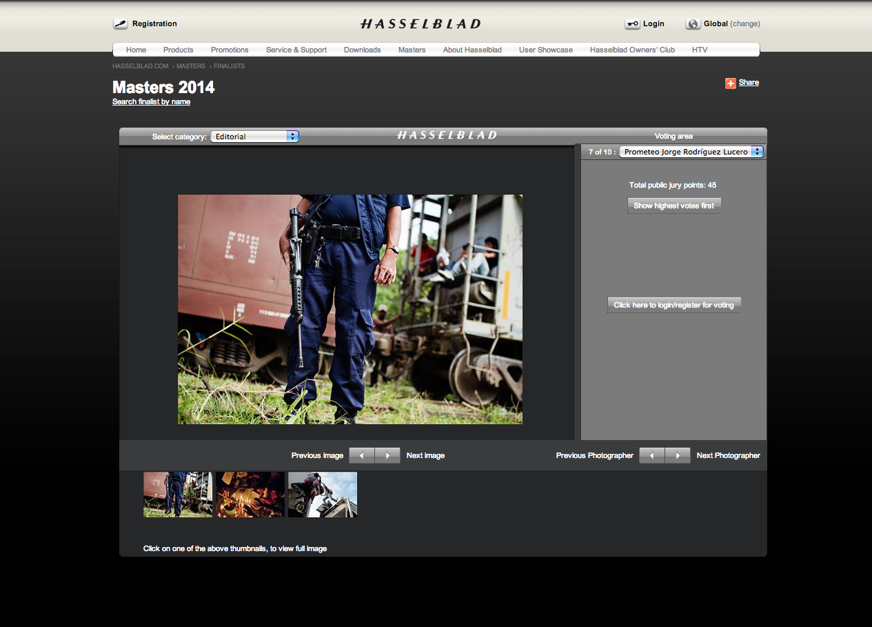 Finalista en el Hasselblad Masters 2014, finalista, categoría Editorial.