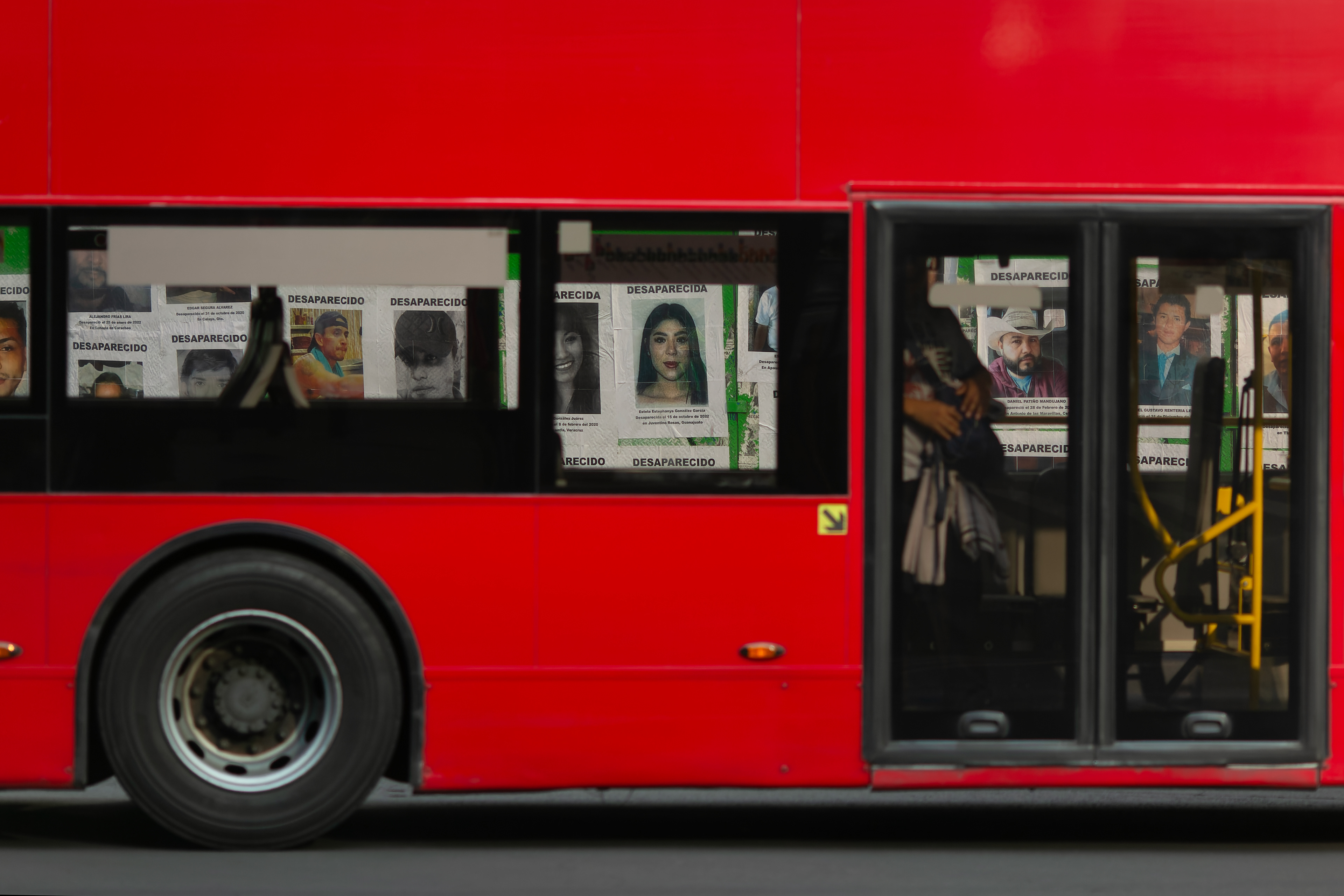 Carteles con los rostros de las víctimas fueron colocados en las rejas que rodean la Glorieta de los Desaparecidos, antes Glorieta de La Palma, durante el Día Internacional de las Víctimas de Desapariciones Forzadas. Ciudad de México, 30 de agosto de 2023 (Foto: Prometeo Lucero)